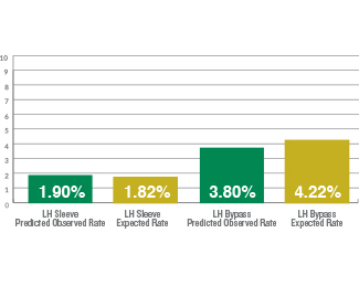 An expected rate is the estimated rate of readmissions that Lexington Health was expected to have during the timeframe, taking into account the complexity of surgical cases performed and comorbidities of patients. A predicted observed rate is the actual rate of readmissions observed at Lexington Health that has been risk adjusted to account for random variables and the volume of cases performed. The predicted observed rate is an overall better estimate of Lexington Health’s rate of readmissions.
