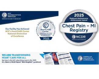 Our staff strives to provide the best cardiovascular care because your heart matters to us. Lexington Health participates in the National Cardiovascular Data Registry (NCDR) for Chest Pain – MI and the American College of Cardiology Chest Pain Center with Percutaneous Coronary Intervention Accreditation program to ensure we are providing the best care to our patients. Our attention to quality has led to multiple performance recognitions from the ACC.
